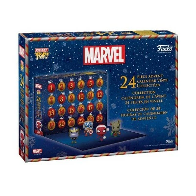 Take your holidays to new heights with the Marvel Funko Advent Calendar! Spider-Man is swinging by to deliver 24 unique Funko Pocket Pops! as you count down to your winter festivities. Open the tiny doors to reveal some of your favorite Marvel characters dressed in their holiday finest. Each collectible brings a festive twist to their typical look, making these heroes and villains a super addition to your holiday dΓ©cor. Who will team up to join in on your celebrations? Pocket Pop! collectibles vary in height depending on character. The maximum collectible height is approximately 2.25-inches tall.
