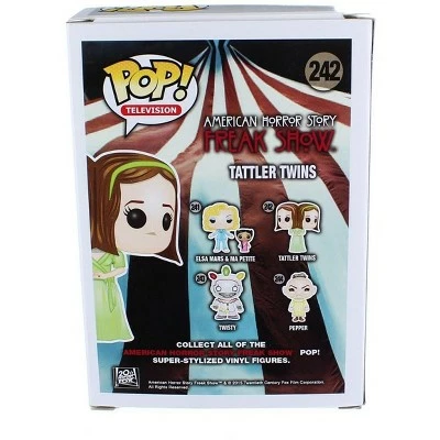 From the fourth season of American Horror Story, conjoined twins Bette and Dot share nearly everything…except personalities! The Tattler sisters are portrayed in Funko’s signature POP! style, standing approximately 3-3/4″ tall. This vinyl collectible comes brand new in stylish window box packaging. A must-have for any AHS: Freak Show fan! Don’t miss out, collect them all!