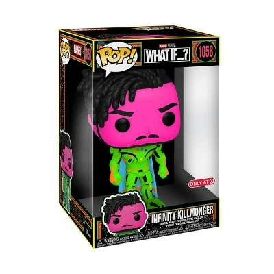 In the endless possibilities, venture to wonder and explore with Marvel’sβ―What Ifβ¦?β―animated series. Collectβ―the Marvel Blacklight Jumbo Pop! Infinity Killmonger to complete yourβ―What Ifβ¦?β―set. Who will this villain from another universe cross paths with in your Marvel collection? Act fast to complete your set! Jumbo Blacklight vinylβ―bobblehead of Infinity Killmongerβ―is approximatelyβ―10-inches tall.