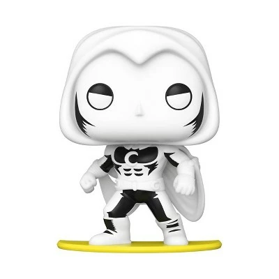 Swinging into action on a crescent moon, Pop! Moon Knight comes to life from the front cover of a Marvel comic book. This special collectible features the cover art for the Marvel Spotlight on the Moon Knight: Enter the Conqueror-Lord Vol. 1 No. 28 June edition and a Pop! of the Moon Knightβall prepackaged in a protective case that can be hung on your wall! Complete your Marvel collection with the Pop! Comic Cover Moon Knight collectible. Vinyl bobblehead is approximately 3.76-inches tall. Approximate dimensions of the protective case: 7β W x 10.75β H x 3.25β D