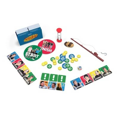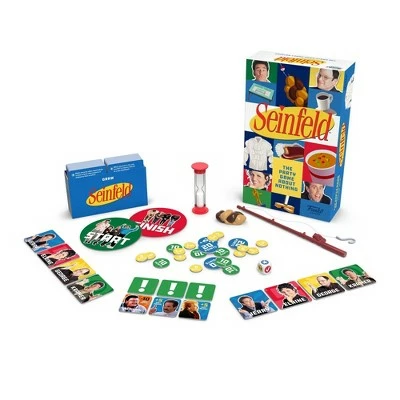 Celebrate the hit β90s TV show in this hilarious head-to-head party game that will challenge what you know about the βshow about nothing.β Score points by answering trivia questions, charades-style acting, and guessing who said or did some of the most hilarious bits ever aired on television! Youβll even get a chance to fish for the marble rye like George and Jerry did! Itβs hundreds of Seinfeld-celebrating activities for outrageous fun!